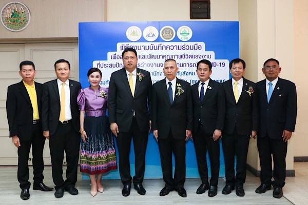 นายสุชาติ ชมกลิ่น รัฐมนตรีว่าการกระทรวงแรงงาน ได้ให้เกียรติเป็นประธานในพิธีลงนามบันทึกความร่วมมือเพื่อส่งเสริมและพัฒนาคุณภาพชีวิตแรงงานที่ประสบปัญหาการว่างงานจากสถานการณ์ COVID-19 ระหว่างสำนักงานประกันสังคม กระทรวงแรงงานและสถาบันบริหารจัดการธนาคารที่ดิน (องค์การมหาชน) หรือ บจธ. โดยมีคณะผู้บริหารของกระทรวงแรงงานประกอบด้วย นายสุทธิ สุโกศล ปลัดกระทรวงแรงงาน และนายทศพล กฤตวงศ์วิมาน เลขาธิการสำนักงานประกันสังคม สำหรับคณะผู้บริหารจาก บจธ. ประกอบด้วย พล.ต.อ. เฉลิมเกียรติ ศรีวรขาน ประธานคณะกรรมการ บจธ. นายกุลพัชร ภูมิใจอวด รองผู้อำนวยการ ปฏิบัติหน้าที่แทนผู้อำนวยการ บจธ. สำหรับพิธีลงนามจัดขึ้น ณ ห้องประชุมจอมพล ป. พิบูลสงคราม ชั้น 5 อาคารกระทรวงแรงงาน