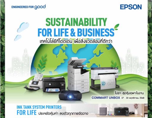 เอปสันประเทศไทยจัดโปรโมชันสุดคุ้มในงาน COMMART UNBOX ขนผลิตภัณฑ์เพื่อบ้านและธุรกิจมาลดราคาครั้งใหญ่ ทั้งกลุ่มเครื่องพิมพ์เพื่อสำนักงาน, EcoTank , สแกนเนอร์ และโปรเจคเตอร์ พร้อมรับสิทธิ์พิเศษ “เก่าแลกใหม่” อัปเกรดเครื่องพิมพ์เก่าเป็นเครื่องใหม่ในราคาประหยัดกว่าที่เคย รับส่วนลดเพิ่มทันทีสูงสุด 1,000 บาท