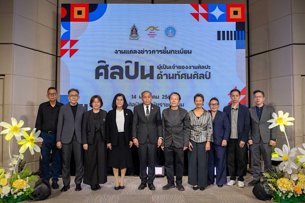วันพุธที่ 14 มกราคม 2569 นางสาวซาบีดา ไทยเศรษฐ์ รัฐมนตรีว่าการกระทรวงวัฒนธรรม มอบหมาย นายประสพ เรียงเงิน ปลัดกระทรวงวัฒนธรรม เป็นประธานงานแถลงข่าวการขึ้นทะเบียนศิลปินผู้เป็นเจ้าของงานศิลปะด้านทัศนศิลป์ โดยมีนางเกษร กำเหนิดเพ็ชร ผู้อำนวยการสำนักงานศิลปวัฒนธรรมร่วมสมัย (สศร.) ผู้แทนกรมสรรพากร นายปัญญา วิจินธนสาร ศิลปินแห่งชาติ สาขาทัศนศิลป์ ผู้บริหารกระทรวงวัฒนธรรม ศิลปิน ข้าราชการและเจ้าหน้าที่ เข้าร่วม ณ ห้องออดิทอเรียม ชั้น 1 หอศิลป์ร่วมสมัยราชดำเนิน เขตพระนคร กรุงเทพฯ